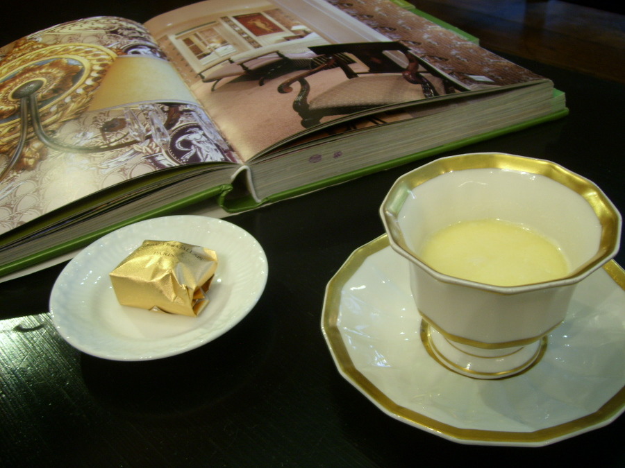 Marron-Glacé which made by boiling a ripe night into sugar syrup is holds the sweetness of jelly and delicate particles like silk together, so have a fantastic matching when eaten with white chocolate tea that tastes of powdered milk cause.