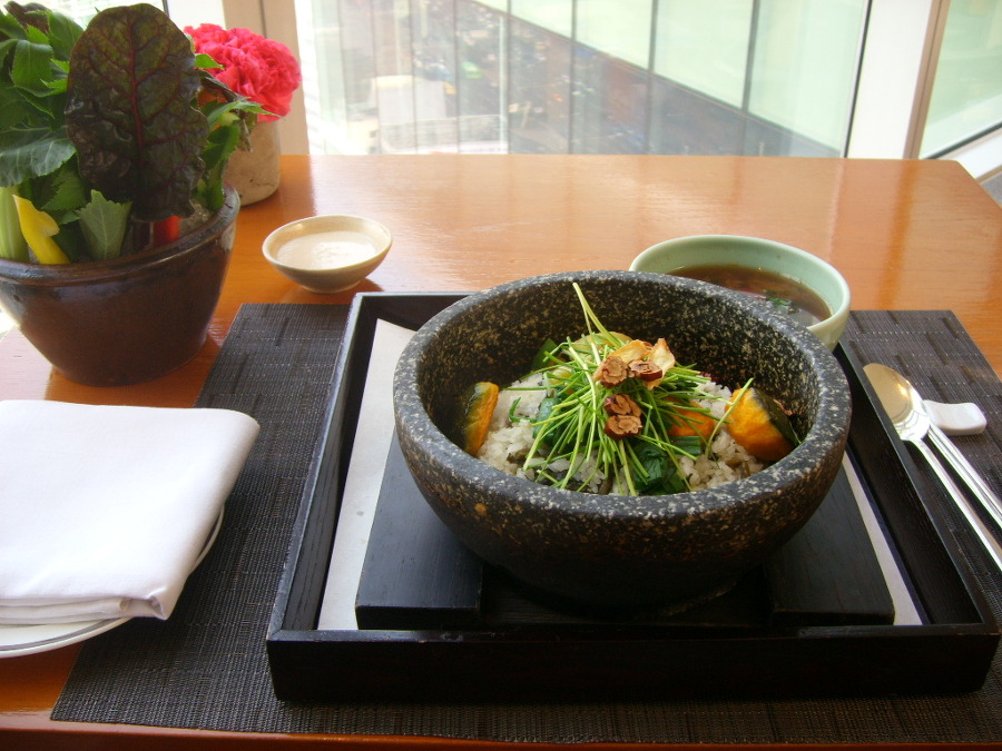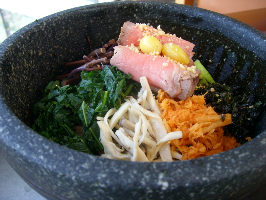 Appreciating the rainbow-colored dolsot (stone-pot) decorated with about 10 kinds of vegetables and a polite meat garnish, it feels like we are in an uncontaminated garden of Eden.